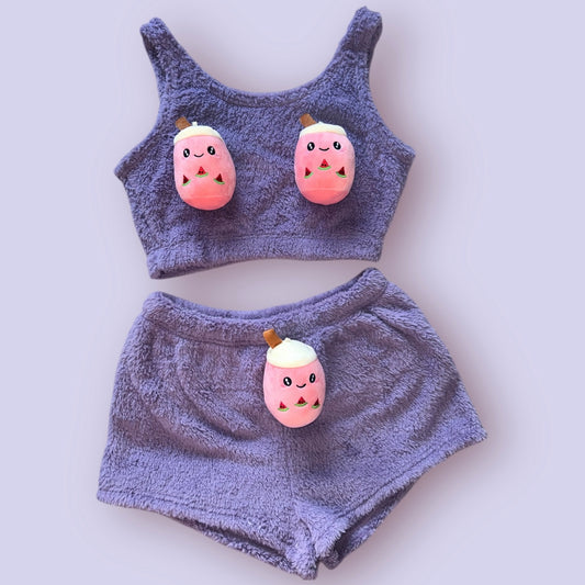 Purple Boba Tea Fluffy Loungewear Set