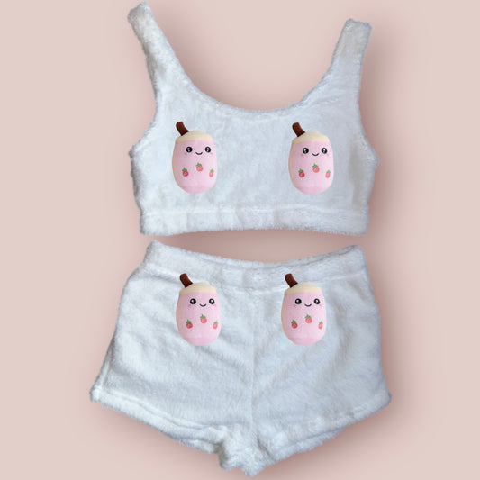 White Boba Tea Fluffy Loungewear Set